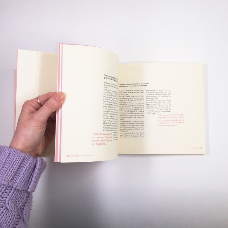 En effet, ayant passé une grande partie de mon enfance avec une personne en situation de handicap, pourtant très léger, j’ai vite été confrontée à la notion d’exclusion. C’est la (re)découverte des personnes en situation de handicap lors de mon stage en Entreprise de Travail Adapté, et des difficultés auxquelles elles sont confrontées, qui m’ont permis de comprendre l’importance de travailler à la réadaptation de l’environnement par le design.