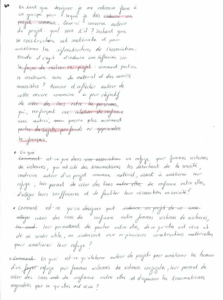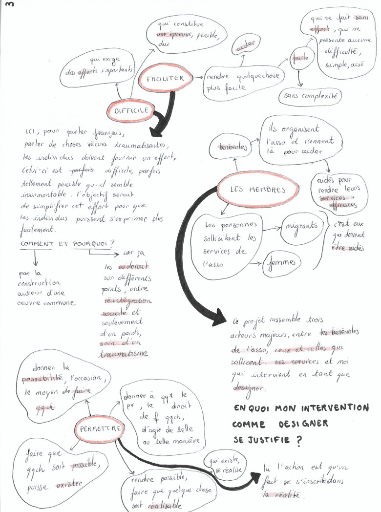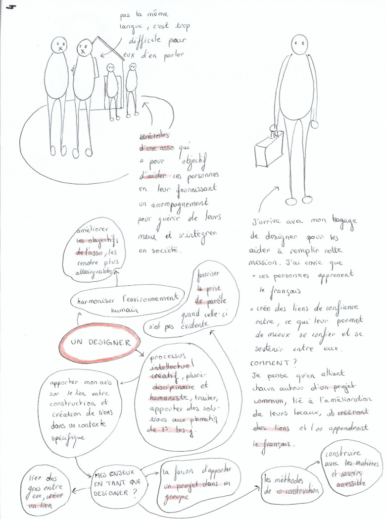 Celles-ci m’ont permis de trouver ma question de recherche qui est : comment un designer peut contribuer à la mise en place d’un projet collaboratif avec des exclus ?