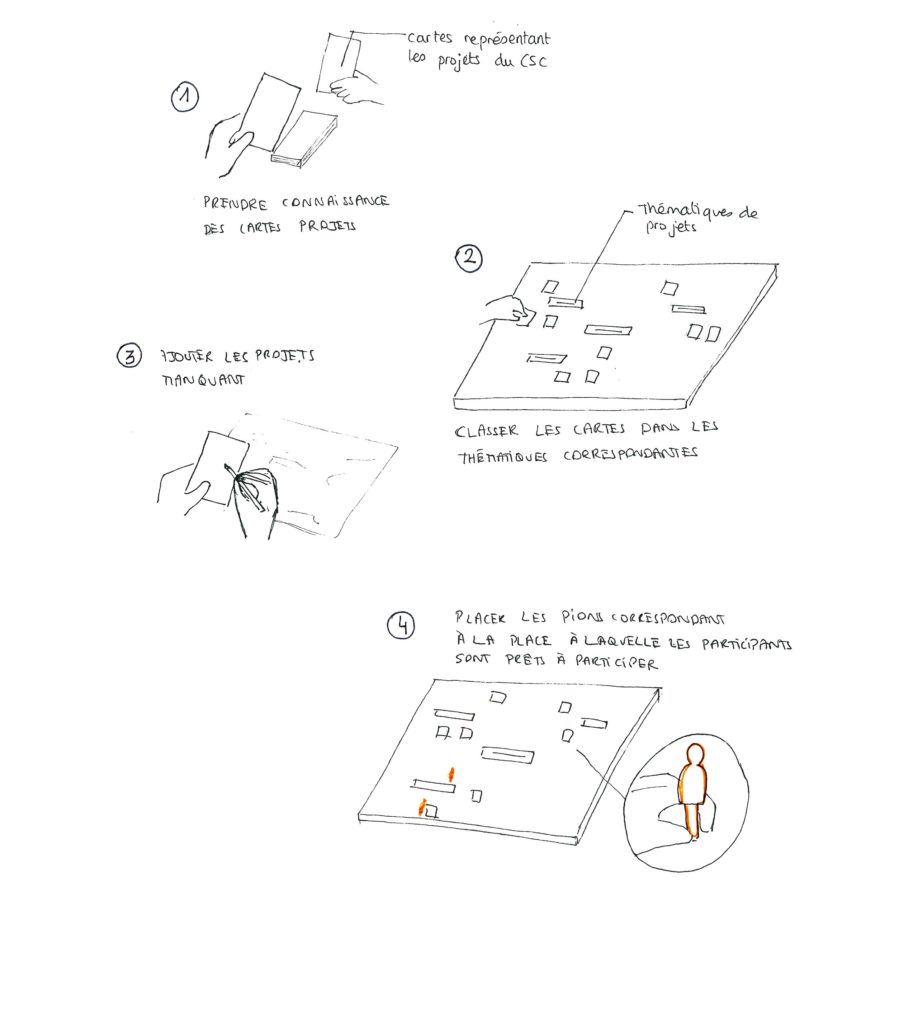 Les cartes ont été développées à l’aide de la référente du groupe, permettant ainsi aux participantes de découvrir les projets présents dans leur centre socio-culturel. Cet atelier m’a permis de faire plusieurs constatations.